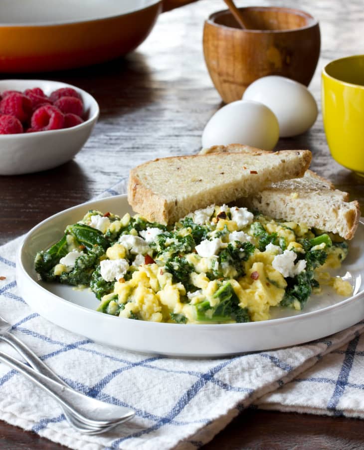 Breakfast Recipe Scrambled Eggs with Goat Cheese, Greek Yogurt